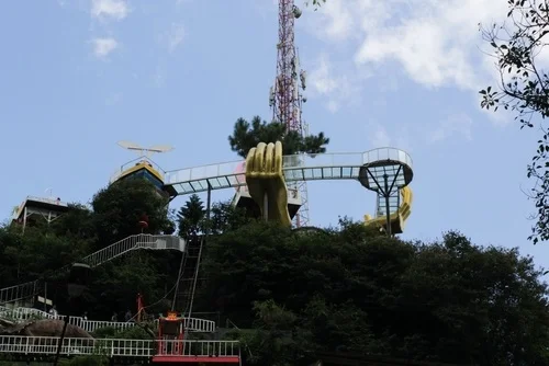 Salah satu daya tarik kawasan wisata Guci yaitu The Baron Hills of Guci yang terletak di Desa Guci, Kecamatan Bumijawa. Ada banyak spot foto menarik yang bisa ditemukan di The Baron Hills of Guci, salah satu yang paling ikonik adalah jembatan kaca.